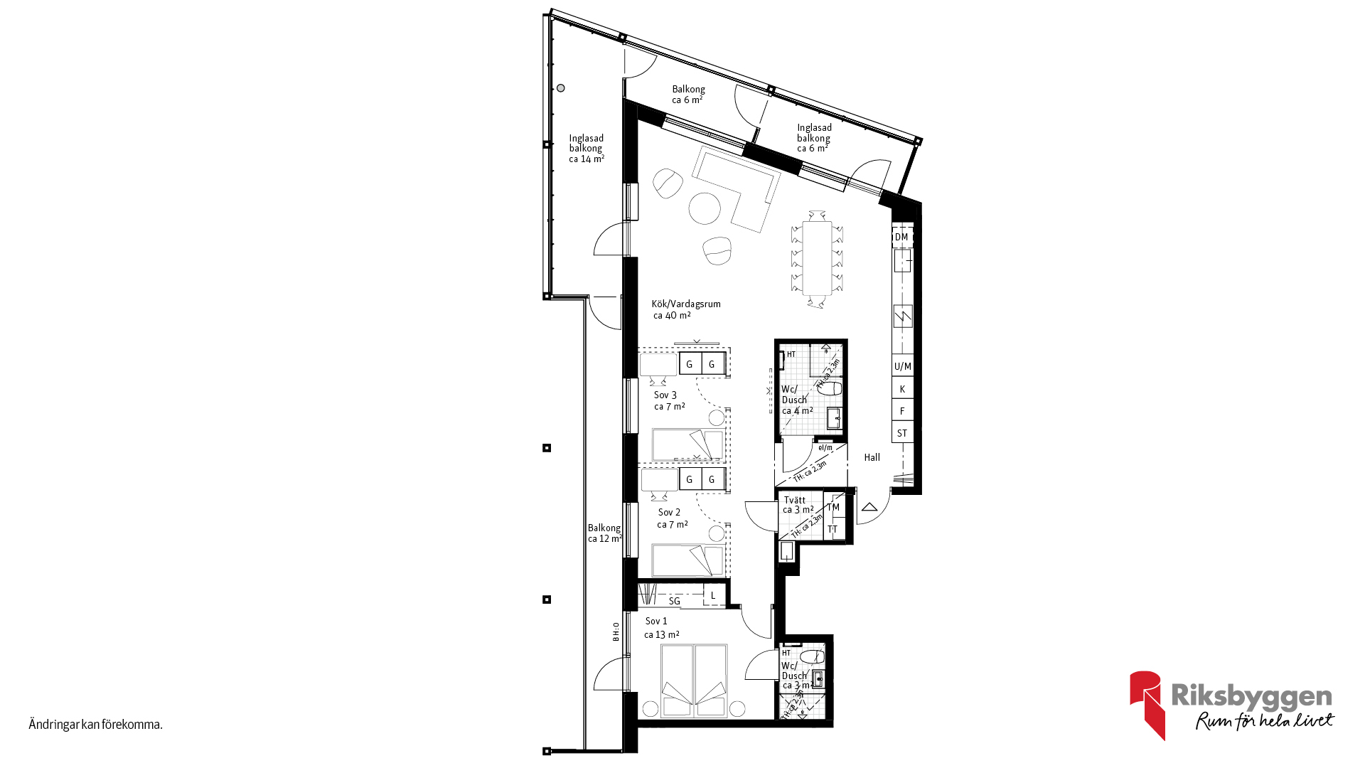 Rymlig 4 rok med balkong runt om och generösa sociala ytor. En bostad där ljus och rymd står i fokus. Här bor du i en genomtänkt 4 rok med balkonger, två inglasad som förlänger säsongen och två öppna. Det stora kök och vardagsrum i öppen planlösning erbjuder gott om plats.Tre sovrum ger flexibilitet för familj, gäster eller hemmakontor. Ett badrum med tvättdel och en wc/dusch, som gör vardagen extra smidig. Ett hem där funktion, komfort och fina sociala ytor möts,