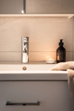 Den fasta inredningen i kök och badrum följer vårt stilpaket Harmoni. Här kombineras stilrena och neutrala materialval och färger som tillsammans skapar en elegant och tidlös stil som tilltalar de flesta.
