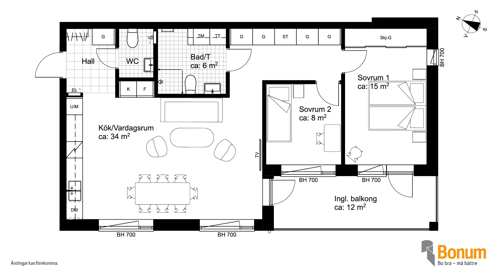 Planlösningarna är skapade för att kunna anpassas efter livets förändringar, så att du kan bo kvar länge och känna dig trygg i att hemmet fungerar både idag och i framtiden.