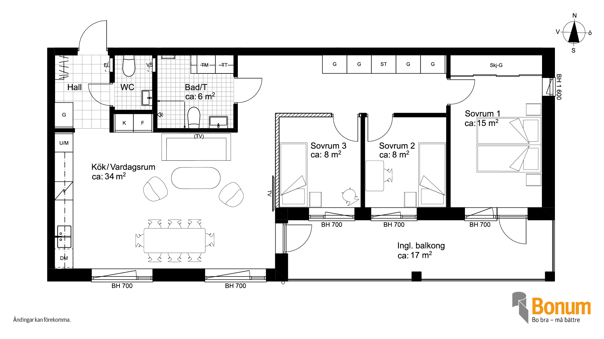 Planlösningarna är skapade för att kunna anpassas efter livets förändringar, så att du kan bo kvar länge och känna dig trygg i att hemmet fungerar både idag och i framtiden.