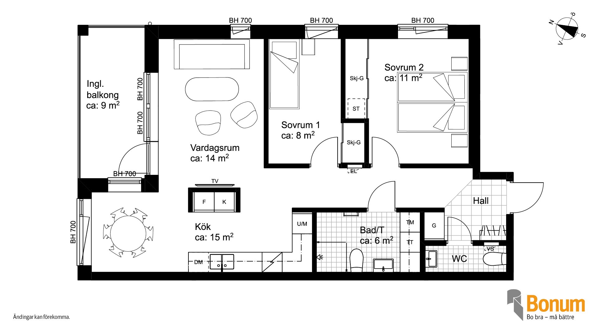 Planlösningarna är skapade för att kunna anpassas efter livets förändringar, så att du kan bo kvar länge och känna dig trygg i att hemmet fungerar både idag och i framtiden.