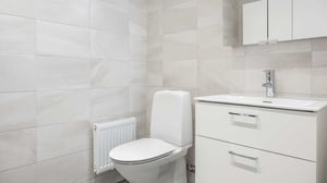 Väggar: Kakel vit eller gråbeige matt 25x50 cm