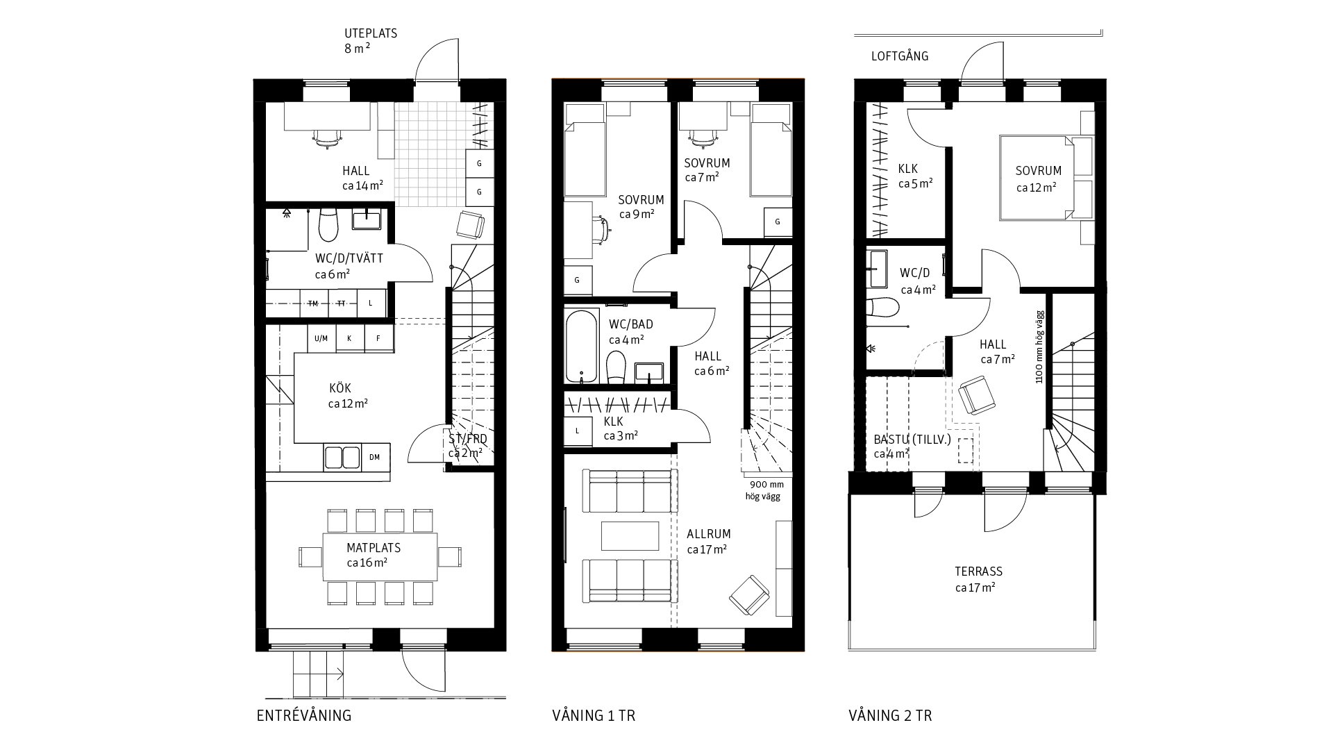 Nytänkande och urbant stadsradhus på tre plan i hjärtat av Inre hamnen. Här finner du ett stadsradhus om 144 kvm fördelat på fem rum och kök och med både uteplats och egen terrass om 17 kvm i högt, soligt läge. Entréplanet erbjuder en välkomnande hall, ett helkaklat badrum med egna tvättmöjligheter och ett trivsamt kök med rymlig plats för matbord intill för hela familjen. På plan två finns två sovrum, ett helkaklat badrum, klädkammare och ett perfekt allrum för socialt umgänge.