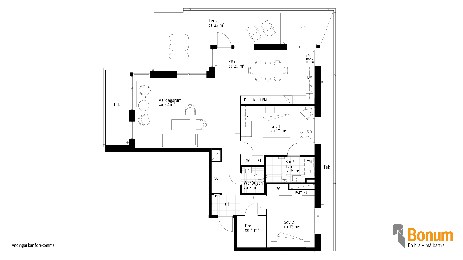 Exklusiv takvåning med havsutsikt! Högst upp i huset väntar ett hem utöver det vanliga! Generösa takterrass i västerläge med sol från eftermiddag till kväll, en fantastisk plats för middagar och avkoppling. Hörnläge med fönster i tre väderstreck som skapar ett ljus och rymd som är svårslagen. Det rymliga köket och det stora vardagsrummet är perfekt för sociala stunder. Två sovrum, badrum med tvättmöjligheter, ytterligfare en Wc/dusch samt förråd i hallen gör hemmet både praktiskt och elegant.