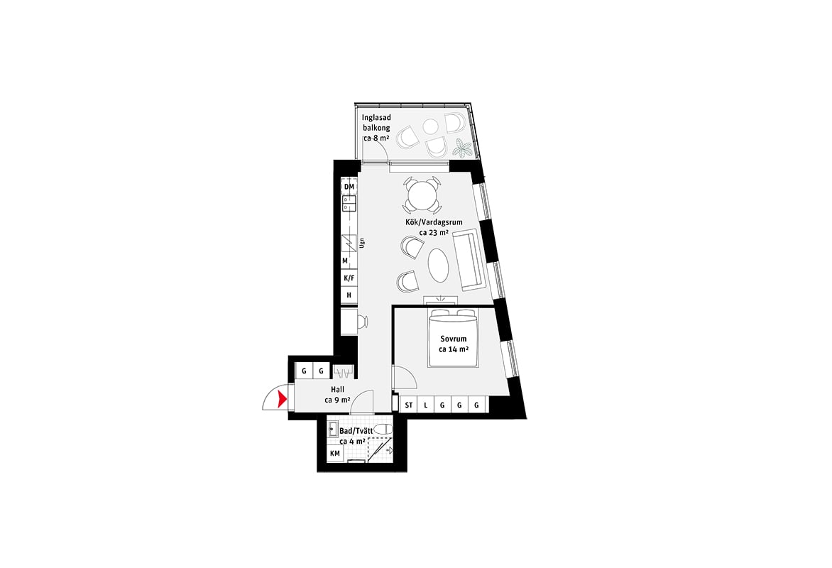 Tvåa med kök och vardagsrum i öppen planlösning och inglasad balkong. Fina gemensamma utrymmen som takterrass på 20:e våningen, gym med bastu och övernattningslägenhet. Här bor du nära naturen samtidigt som du har nära tillgång till stadens alla möjligheter.
