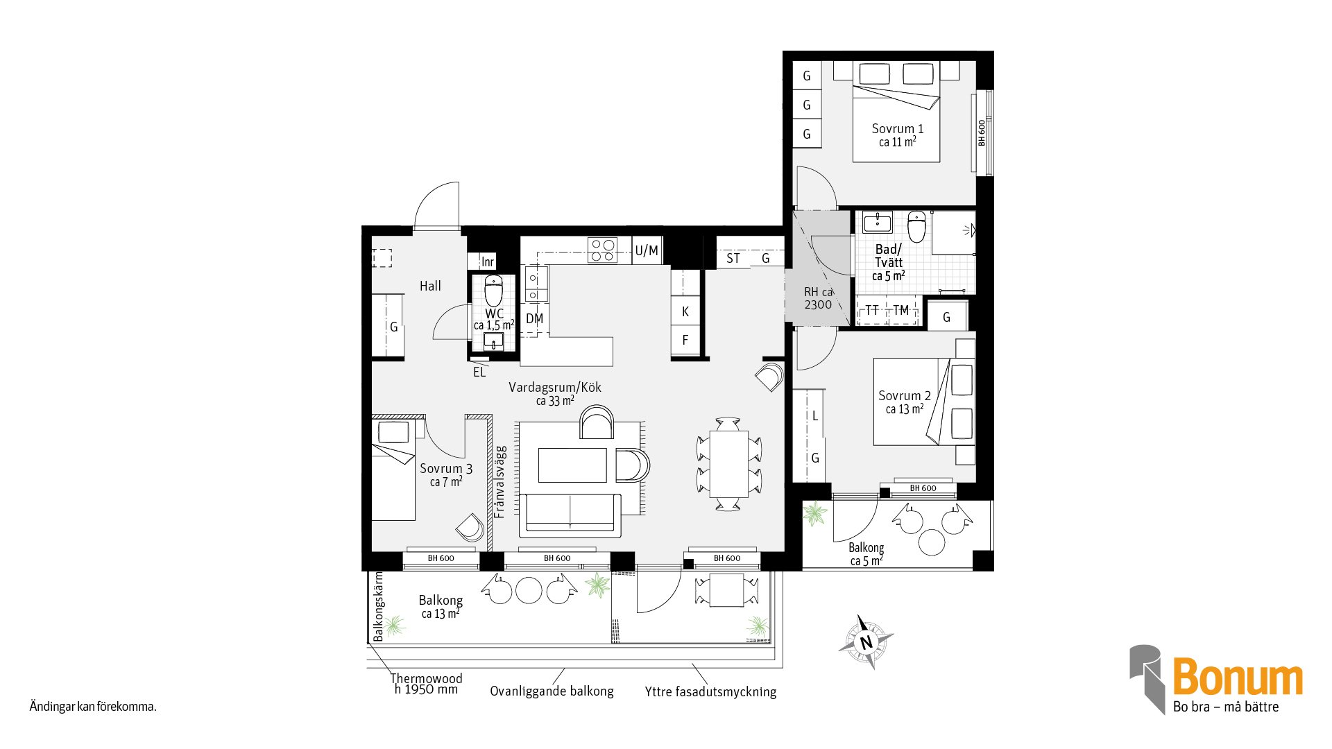 Rymlig gavellägenhet, 4 rok om 89 kvm, med två balkonger varav den största balkongen är delvis inglasad. Lägenhetens balkonger vetter mot Råbysjön. Separat "sovavdelning" med två sovrum samt badrum med torktumlare och tvättmaskin. Från ett av sovrummen når du den mindre av lägenhetens två balkonger. Lägenheten har öppen planlösning mellan vardagsrum och kök men köket är delvis avskilt bakom en bardisk. Vardagsrummet kan göras större genom frånval av ett av sovrummen. Gästwc finns vid entrén.