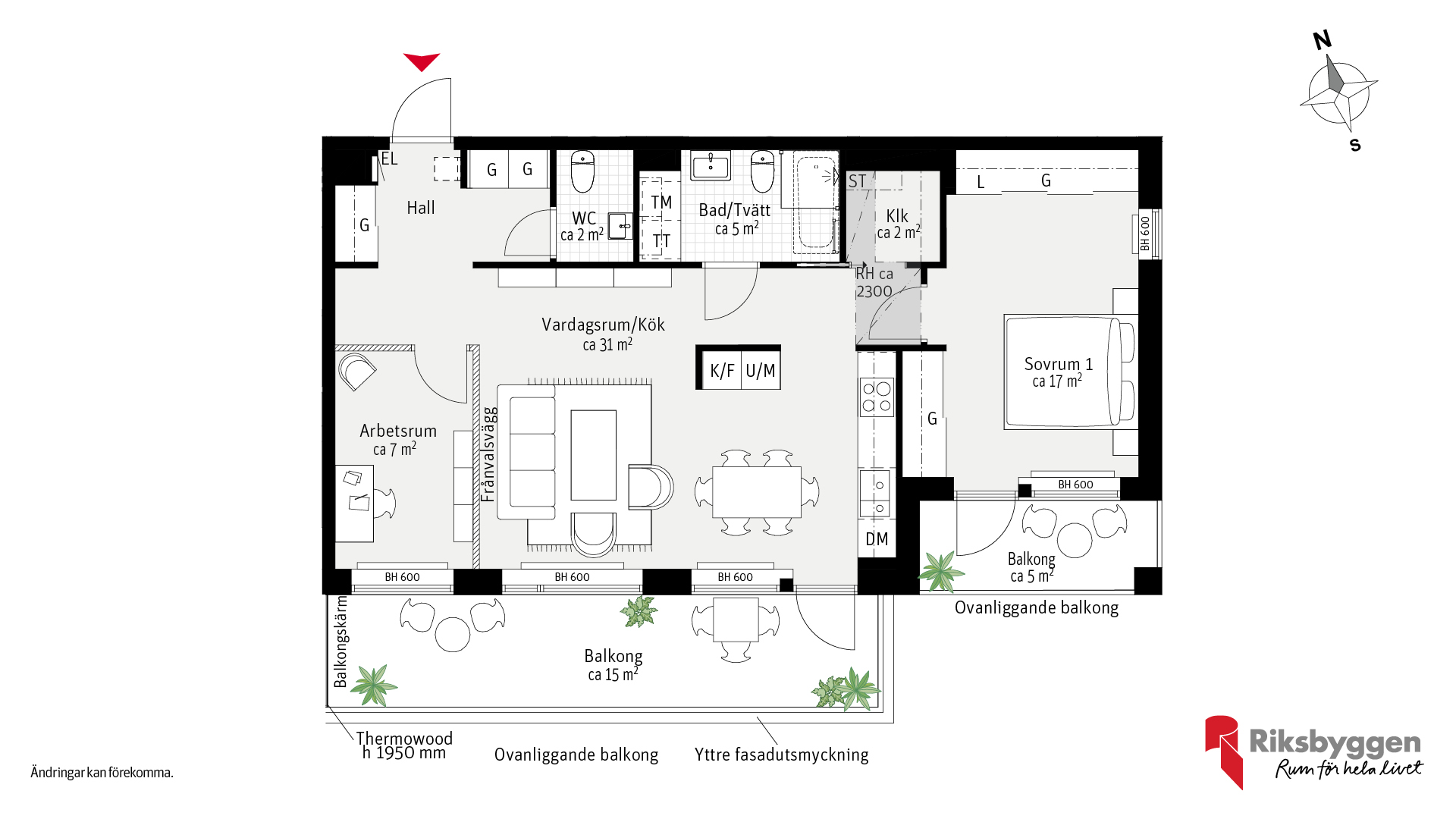 Gavellägenhet med fönster i två väderstreck, 3 rum och kök om 75 kvm, med två balkonger som vetter mot Råbysjön.Balkongerna nås via vardagsrum och sovrummet. Kök och vardagsrum i öppen planlösning. Vill du ha ett större vardagsrum kan du välja bort arbetsrummet. Förvaring i skjutdörrsgarderober samt i en klädkammare. I badrummet finns torktumlare och tvättmaskin, Gästwc finns vid lägenhetsentrén.