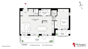 Gavellägenhet med fönster i två väderstreck, 3 rum och kök om 75 kvm, med två balkonger som vetter mot Råbysjön.Balkongerna nås via vardagsrum och sovrummet. Kök och vardagsrum i öppen planlösning. Vill du ha ett större vardagsrum kan du välja bort arbetsrummet. Förvaring i skjutdörrsgarderober samt i en klädkammare. I badrummet finns torktumlare och tvättmaskin, Gästwc finns vid lägenhetsentrén.