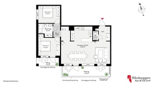 Rymlig gavellägenhet, 4 rok om 89 kvm, med två balkonger. Lägenhetens balkonger vetter mot Råbysjön. Separat "sovavdelning" med två sovrum samt badrum med torktumlare och tvättmaskin. Från ett av sovrummen når du den mindre av lägenhetens två balkonger. Lägenheten har öppen planlösning mellan vardagsrum och kök men köket är delvis avskilt bakom en bardisk. Vardagsrummet kan göras större genom frånval av ett av sovrummen. Gästwc finns vid entrén.