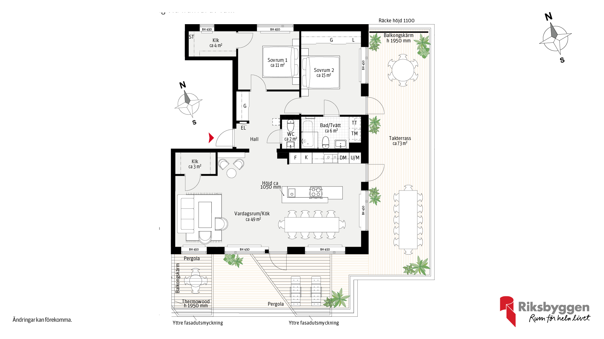 Brf Sjöpromenadens största lägenhet, 4 rum och kök ca 100 kvm med terrass om ca 73 kvm på vilken du kan gå runt hela lägenheten. Här kan du njuta av milsvid utsikt över Lundaslätten. Vardagsrum och kök i öppen planlösning med utsikt över Råbysjön. 3 sovrum med skjutdörrsgarderob och/eller klädkammare. Badrum i anslutning till det större sovrummet. Här finns torktumlare och tvättmaskin. Vid entrén finns även ett gästwc.