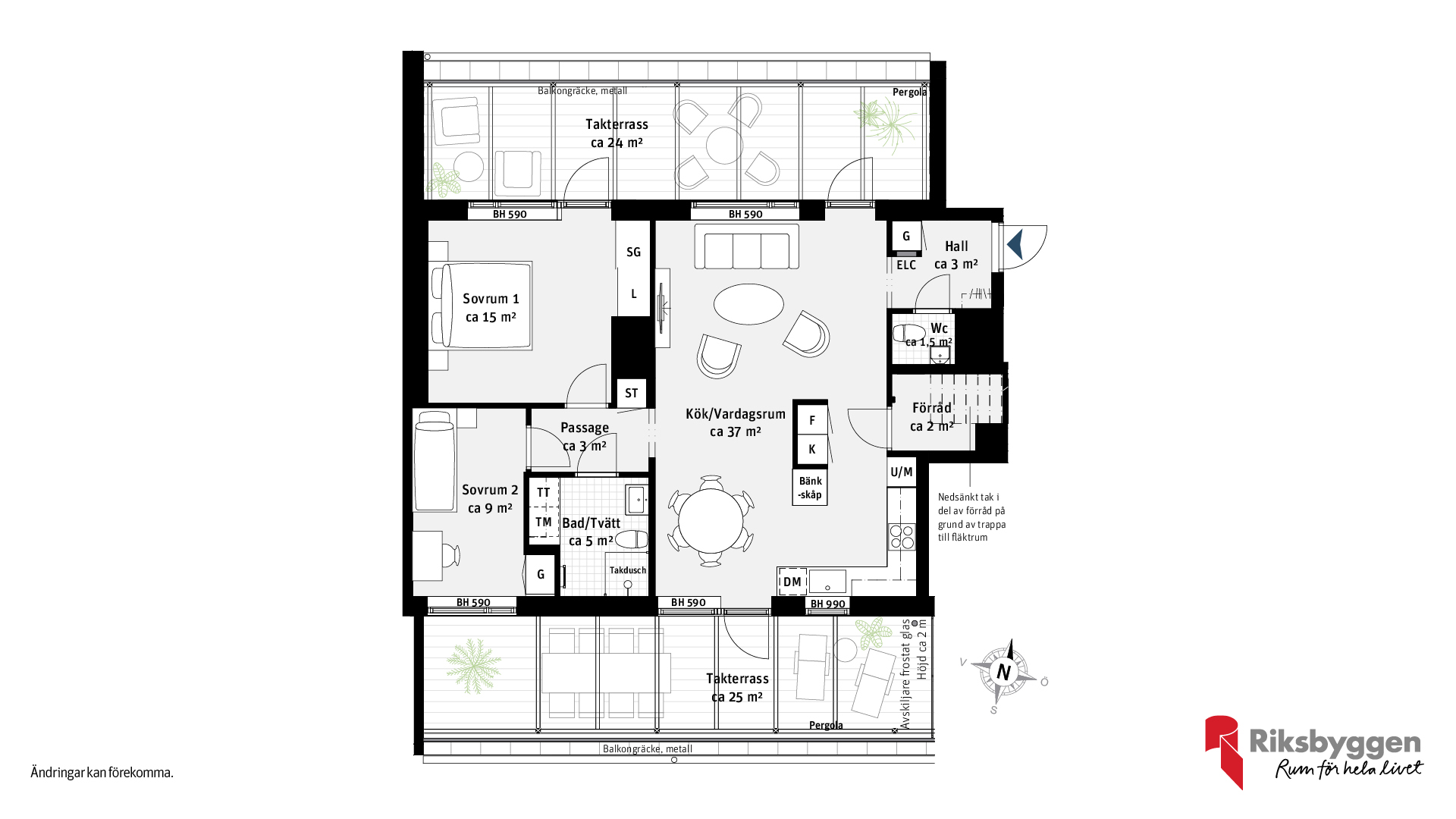 Rymlig 3:a, högt upp i huset, med två terrasser om totalt nästan 50 kvm. Ett boende med bekvämligheter utöver det vanliga. Två rymliga sovrum, kök och vardagsrum i social planlösning och med golvvärme i alla rum blir detta en lägenhet att trivas i många år framöver. Lägg till två rejäla terrasser, gott om förvaring i såväl hall som sovrum samt helkaklat badrum samt gäst WC.