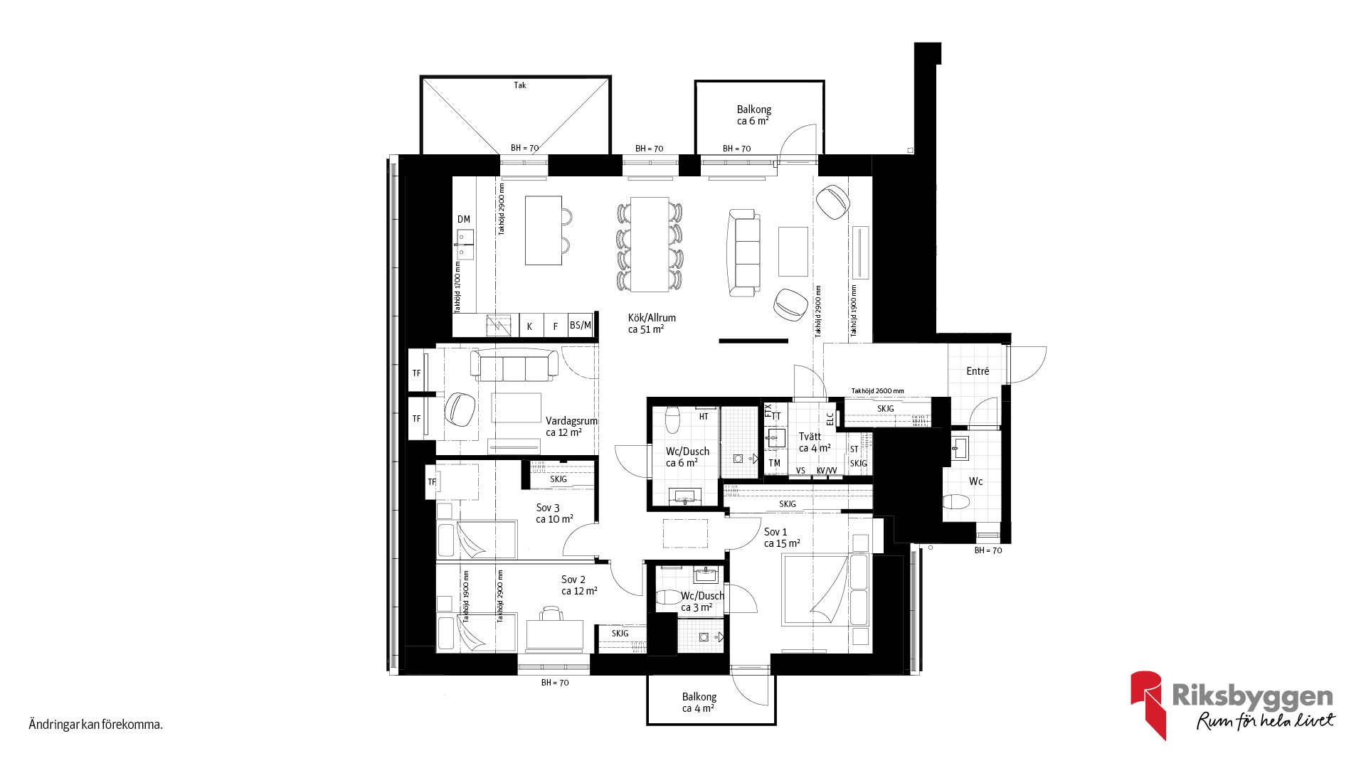 Läcker vindsvåning och flexibla 4 rum och kök med öppen planösning och fönster/takfönster i alla vöderstreck. Två balkonger i olika lägenhet och stort kök med köksö. Wxtra Wc/d till master bedroom. Vill du ha ytterligare ett större sovrum istället för två små kan du välja bort väggen mellan sovrummen. Eller är det snarare så att du är i behov av fler sovrum så kan det mindre vardagsrummet göras om till sovrum.
