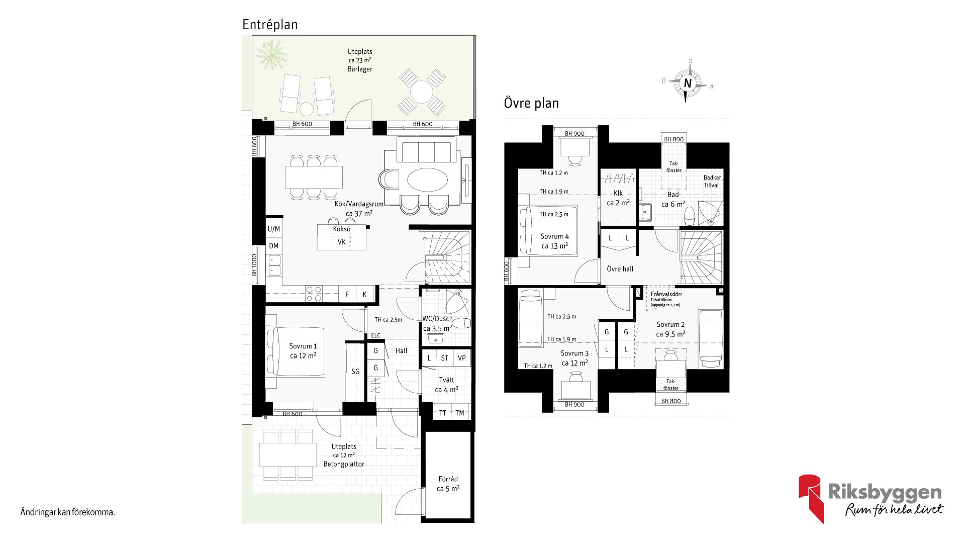 Interiören bjuder på gott om plats för familjen med minst tre sovrum (upp till fem), två badrum och generösa ytor för umgänge och vardagsmys. Här finns rum för alla att trivas i. Ute i det fria väntar vackert teglade hus med soldränkta trädäck och sköna gräsmattor att njuta av för både små och stora fötter.
