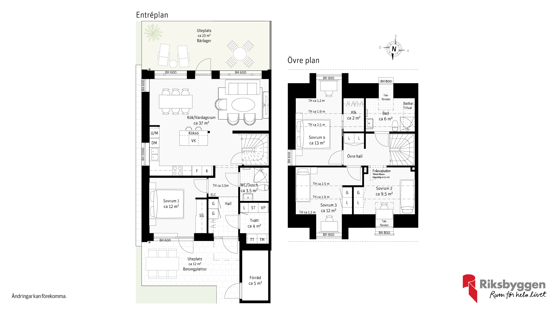 Nybyggt parhus i vackert rött tegel. Huset, om 121 kvm, har fyra sovrum och generösa sällskapsytor med öppen planlösning mellan kök och vardagsrum. Det finns två badrum och separat tvättrum med tvättmaskin och torktumlare. Övervåningen har fina takfönster och bra med förvaring i klädkammare och garderober. Vi erbjuder möjlighet att välja någon av våra fina inredningsstilar för kök och badrum. Huset har två fina uteplatser, en med utgång från vardagsrummet och en vid entrén.