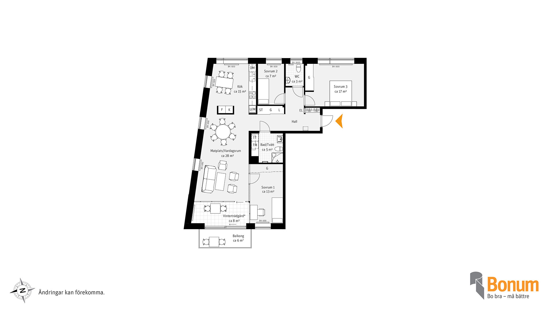 Unik gavellägenhet om hela 116 kvm. Balkong i västerläge. Kök med matplats och delvis öppen planlösning mot vardagsrummet, som kan göras större med frånval av väggar. Njut i vinterträdgården i anslutning till balkongen. Badrum med torktumlare och tvättmaskin samt gästwc. Bläddra i inredningsmagasinet för att välja inredning i din nya bostad. I bostadsväljaren kan du se var lägenheten ligger i huset.