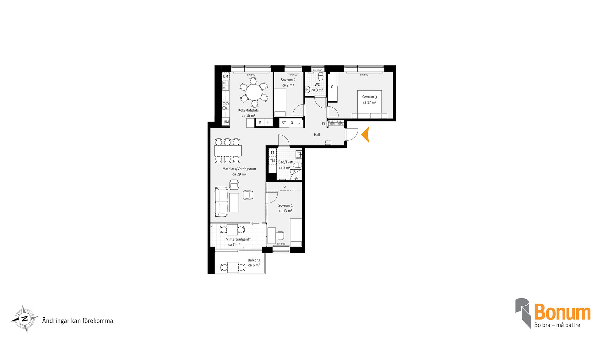 Unik genomgående lägenhet om hela 116 kvm. Balkong i västerläge. Kök med matplats och delvis öppen planlösning mot vardagsrummet, som kan göras större med frånval av väggar. Njut i vinterträdgården i anslutning till balkongen. Köket delvis avskilt från vardagsrummet. Badrum med torktumlare och tvättmaskin samt ett gästwc. Bläddra i inredningsmagasinet för att välja inredning i din nya bostad. I bostadsväljaren kan du se var lägenheten ligger i huset.