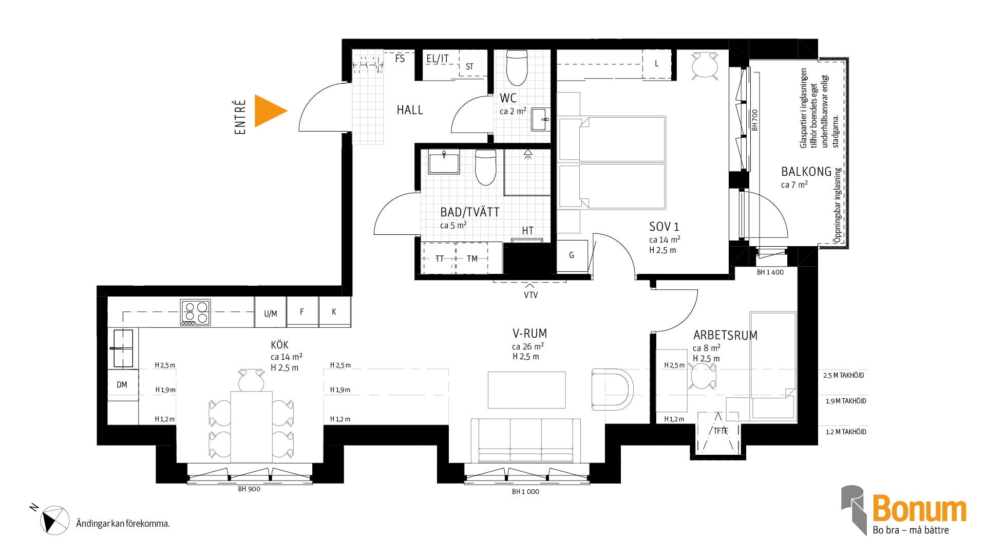 Ev. garderob alt. skjutdörrsgarderob, se planlösningsblad för omfattning.