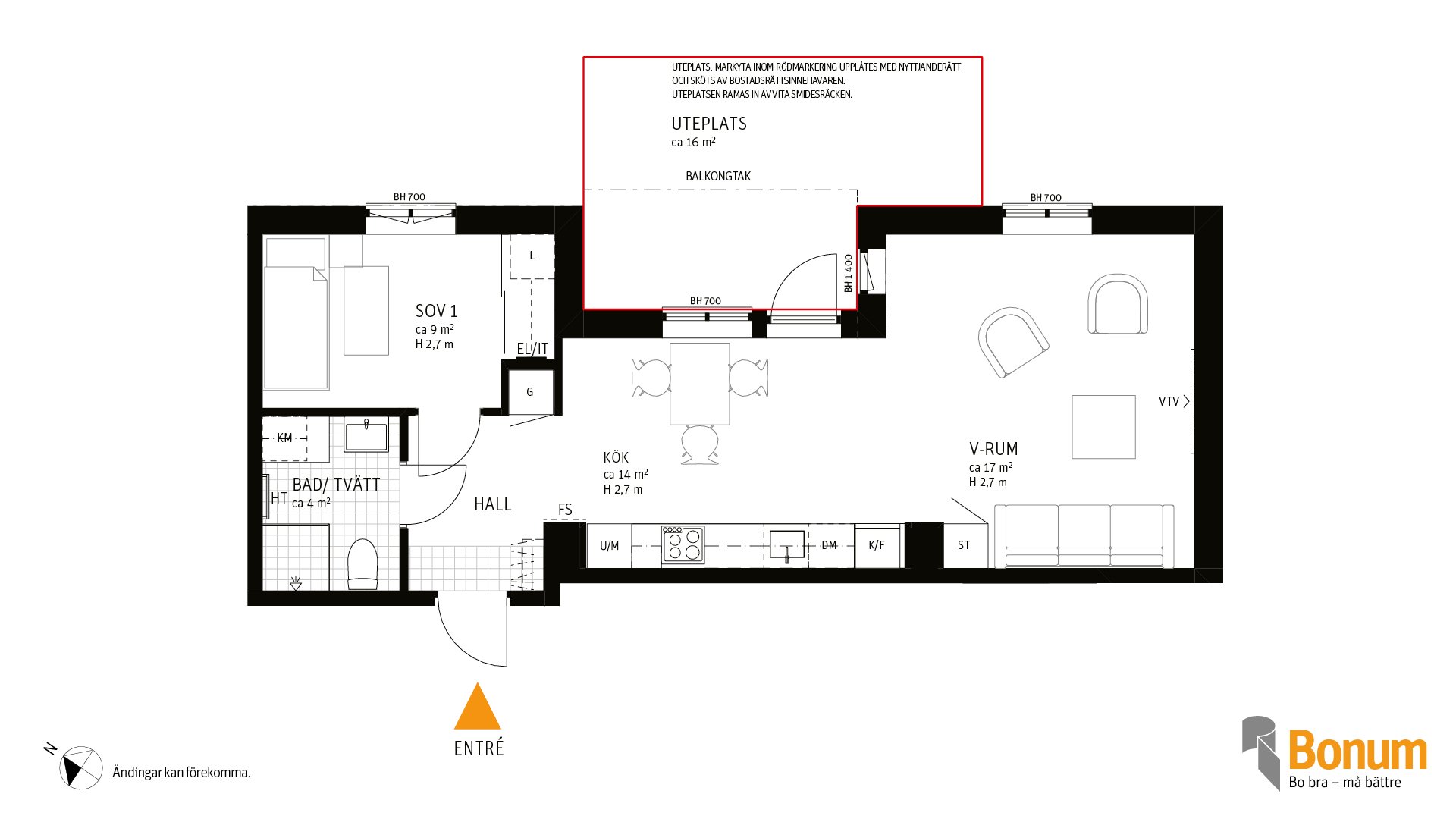 Ev. garderob alt. skjutdörrsgarderob, se planlösningsblad för omfattning.