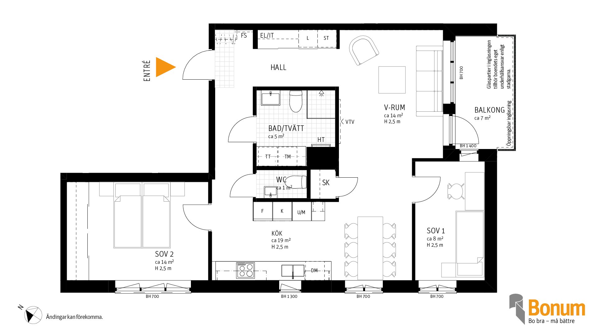 Ev. garderob alt. skjutdörrsgarderob, se planlösningsblad för omfattning.