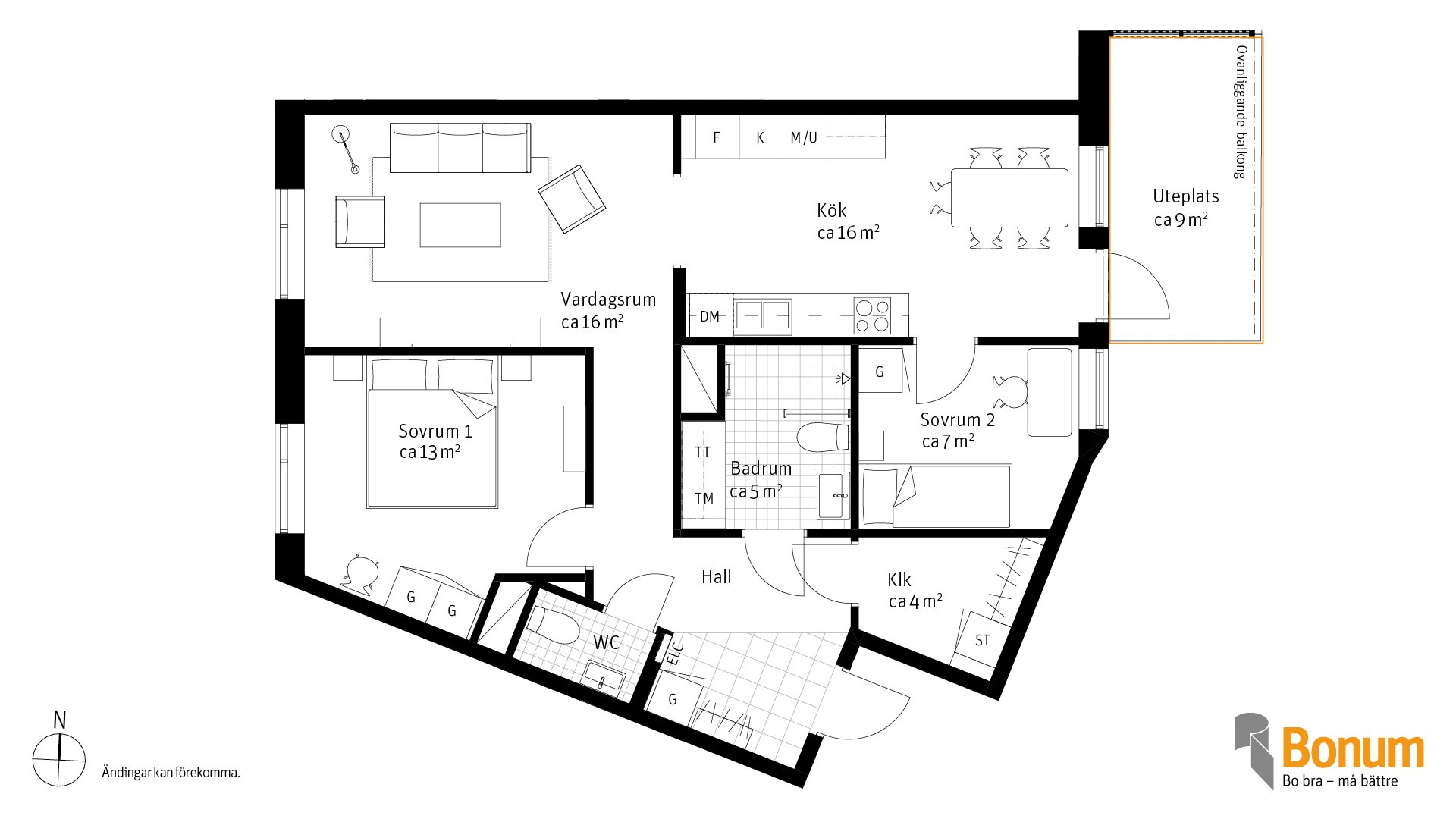 Här möts du av ljusa planlösningar, parkettgolv utan trösklar och kök från Vedum i smakfullt vitt eller grått utförande med rostfria vitvaror. De kaklade badrummen är både praktiska och stilrena med tvättmaskin och torktumlare. I alla bostäder från tre rum och kök och uppåt finns två toaletter, en detalj som gör livet enklare och bekvämare.