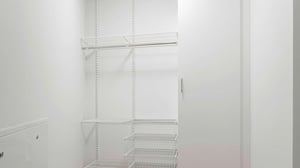 Köket är utrustat med vita köksluckor från Vedum, laminatbänkskiva med trästruktur och ovanför arbetsytorna sitter ett matt vitt kakel i liggande sättning Diskmaskinen är integrerad för ett enhetligt intryck och samtliga vitvaror är i rostfritt utförande: induktionshäll, inbyggnadsugn, mikro samt kyl och frys i fullhöjd. Spiskåpan är av modellen Pandora Green Flow, en energieffektiv och tyst lösning som monteras diskret bakom skåplucka för att bibehålla kökets rena linjer.