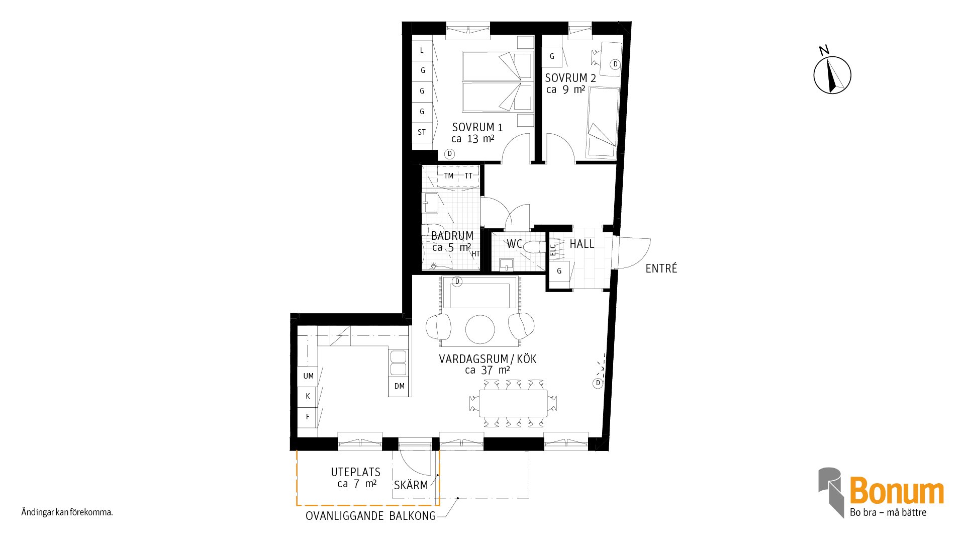 Här har du en välplanerad trea med öppen planlösning och en generös yta om 79 m². Här möts du av ett ljust och luftigt vardagsrum i anslutning till ett modernt kök, perfekt för både vardagsliv och sociala tillställningar. Lägenheten har två rymliga sovrum, varav det största har gott om förvaring med flera garderober. Badrummet är stilrent med tvättmaskin och torktumlare, och du har även en separat wc för gästernas bekvämlighet. Uteplatsen är belägen i söderläge mot den lummiga innergården.