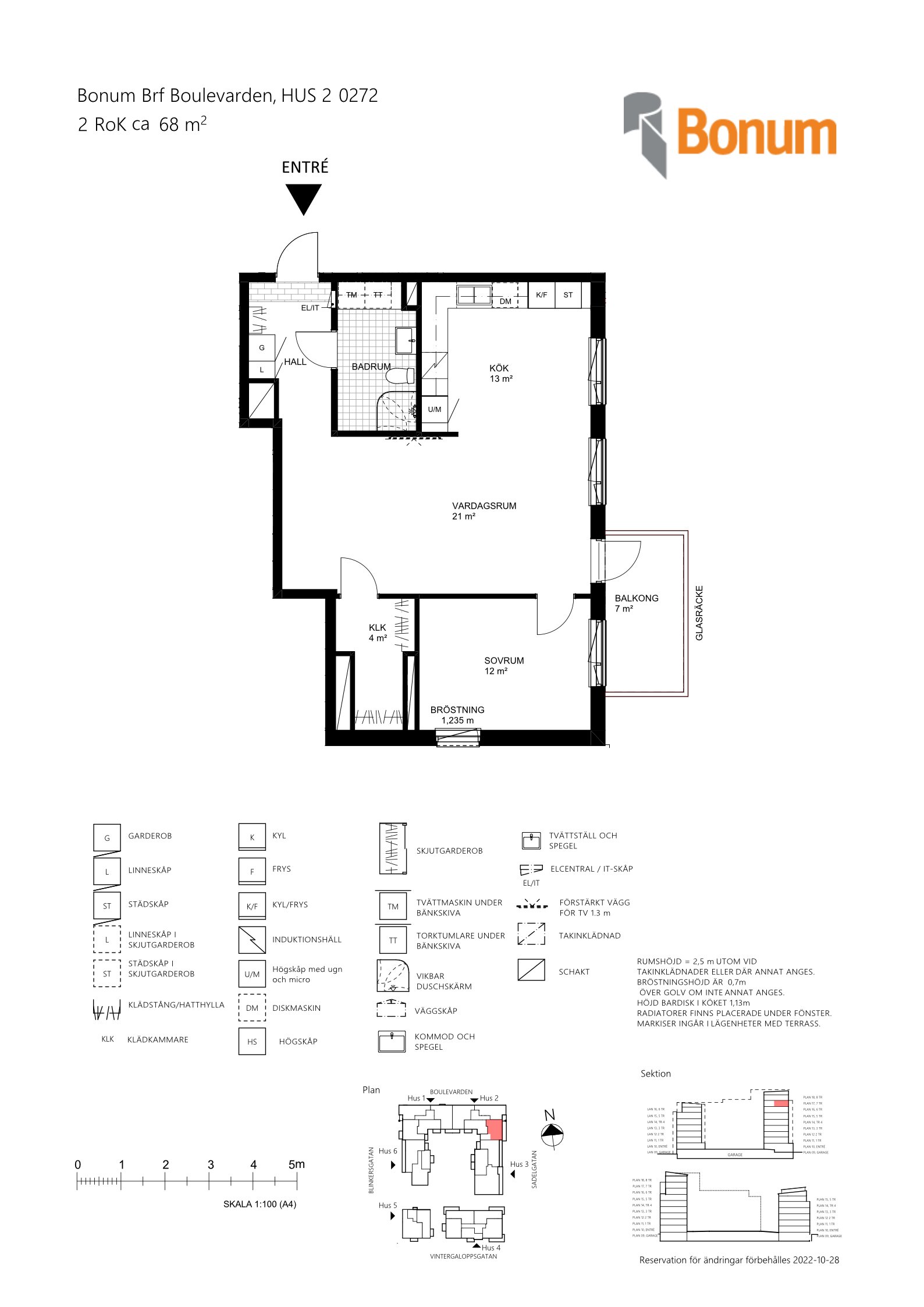 Största tvåan i huset hittar du på sjunde våningen. Hall med en kvm klinkergolv, hatthylla och garderob. Från hallen nås badrum med inredningsstilen Sinne med greige matt kakel och klinker. Dusch med svängda dörrar, förhöjd wc, tvättställ med sandbeige kommod, TM och TT. Sovrum om 12 kvm, intill finns klädkammare 4 kvm. Öppen planlösning mellan v-rum och kök. Köksinredning är i inredningsstilen Natur med sandbeiga köksluckor, köksbänk i laminat Impanema vit och som stänkskydd. Balkong i öster.