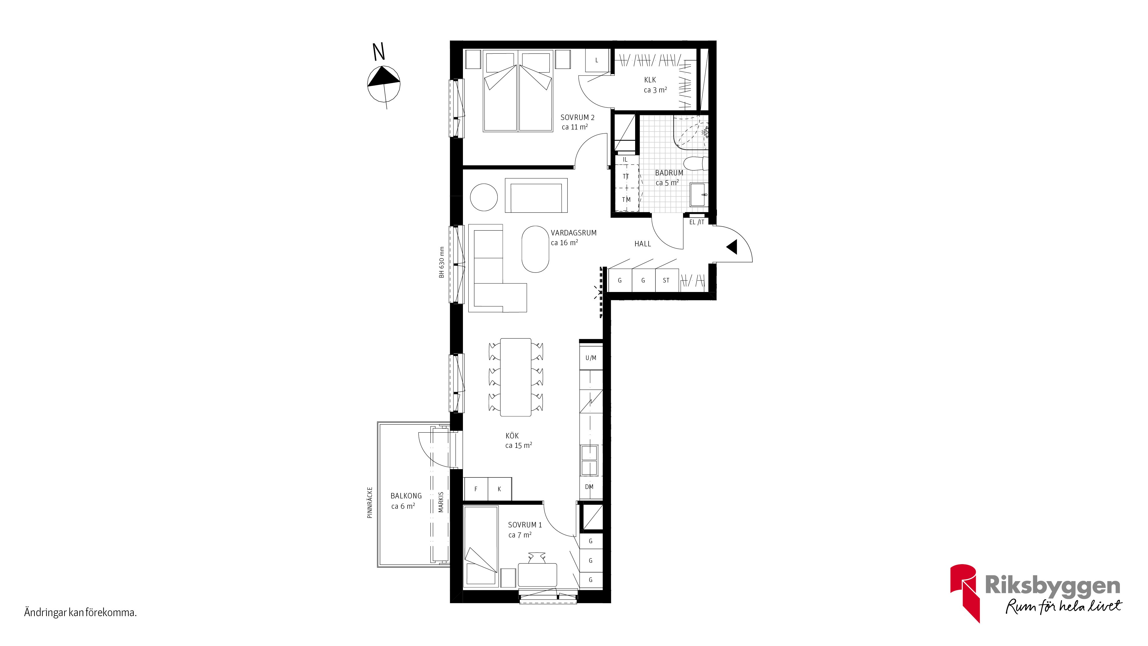 Näst högst upp i huset finns denna 3 rok med 66 kvm. Balkong i västerläge med markis. Trivsam öppen planlösning mellan kök och vardagsrum skapar en generös social yta. Köksinredning i grått från Vedum. Detta harmoniserar väl med det vitpigmenterade askgolvet. God förvaring med bland annat klädkammare i ett av sovrummen som är placerade i varsin ände i bostaden. Välkommen hem!