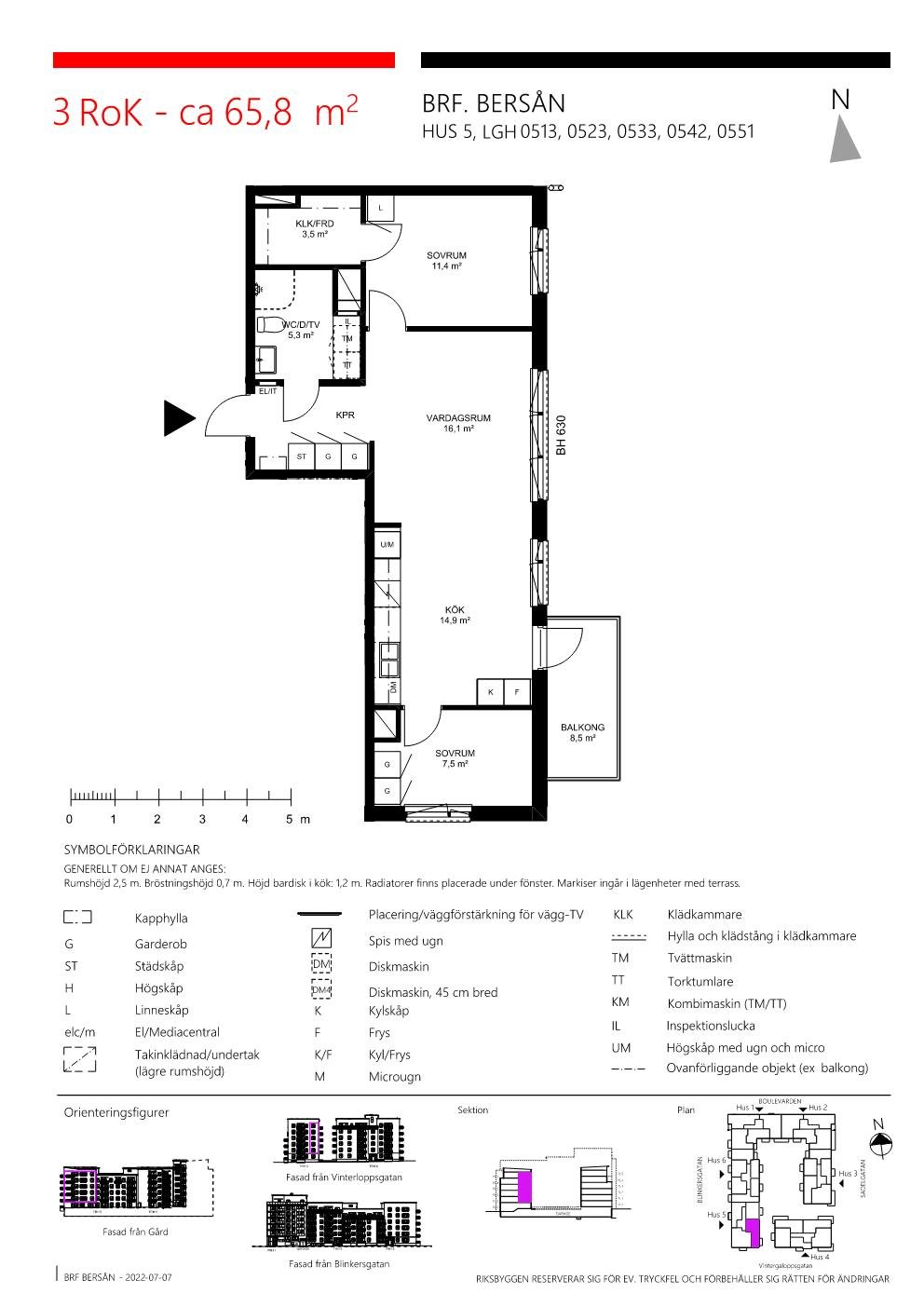Smart planerad trea på 66 kvm på tredje våningen, perfekt för den lilla familjen eller paret. Här finns ett socialt kök/vardagsrum, två sovrum och balkong med morgonsol mot lugn innergård. Det större sovrummet rymmer dubbelsäng, medan det mindre passar som barnrum, gästrum eller arbetsrum. Stilrent badrum med tvättmaskin och torktumlare. Förvaring i lägenheten ger extra bekvämlighet samt mindre förråd i källare. Här bor du i ett modernt område nära grönska, service och kommunikationer.
