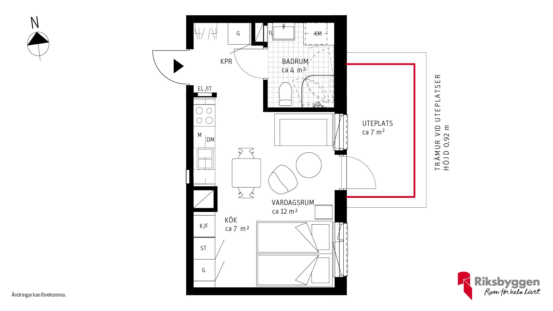 Välplanerad 1:a med uteplats med vy mot innergård. God möblerbarhet som ger utrymme för separat sovdel. Köksinredning i vitt från Vedum, god bekvämlighet med diskmaskin. Helkaklat badrum i vitt med god förvaring och kombinerad tvättmaskin och torktumlare. Välkommen hem i juni!