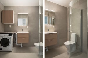 Även ditt nya badrum har inretts med omsorg om detaljerna. För att helhetsintrycket ska hålla stilen i hela lägenheten har våra inredare noga valt ut kakel och klinker så att det matchar inredningen i köket.