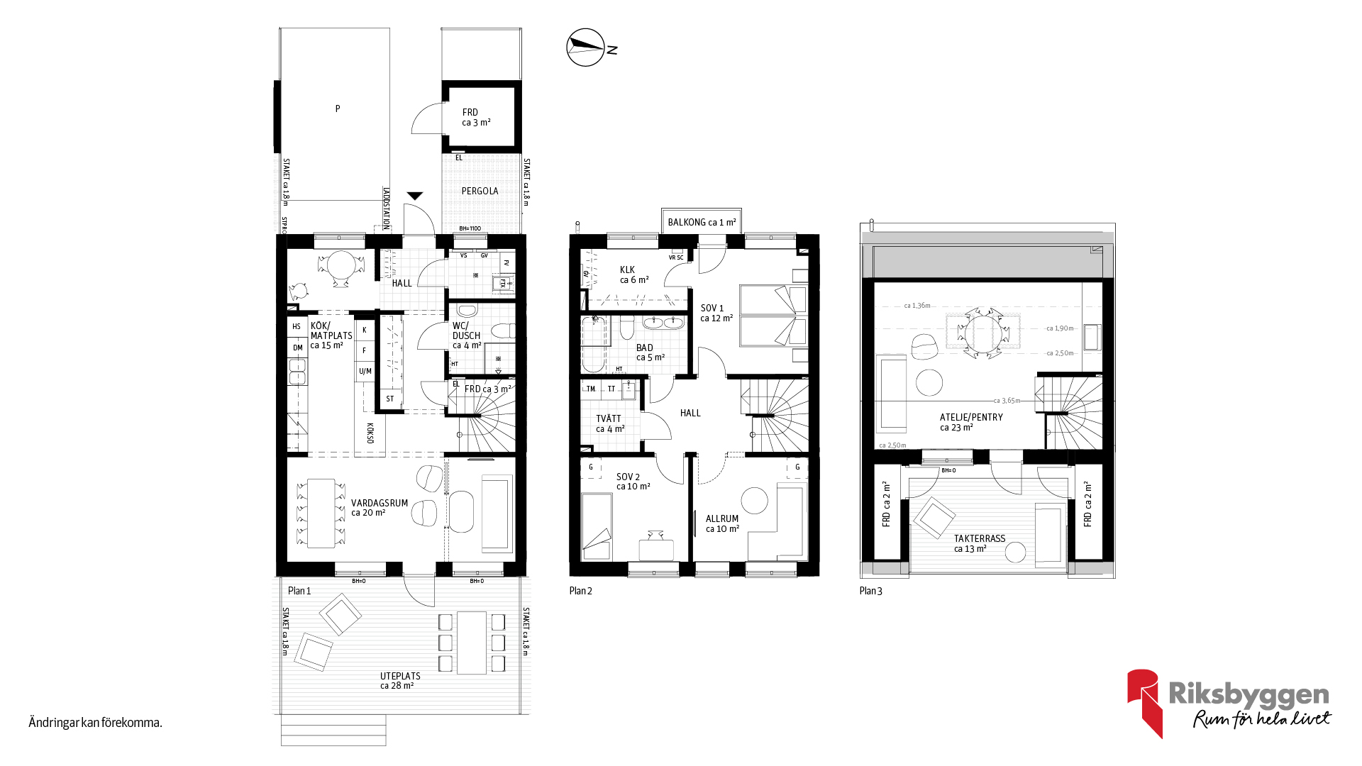 Flexibelt boende när livet förändras kan byggas med 2-5 sovrum. Det är dubbla badrum med generösa ytor. I grovhallen i entrén tar du av dig skitiga stövlar eller tar hand om hunden. Köket är gjort för både fest och vardag. Plan ett är den sociala delen och plan två är mer privat, med sovrum och allrum. På plan 2 finns även tvättstugan så du slipper släpa tvätten mellan de olika planen, och ett generöst badrum med dubbelhandfat. Tredje planet innehåller atalje med pentry och terrass mot älven.
