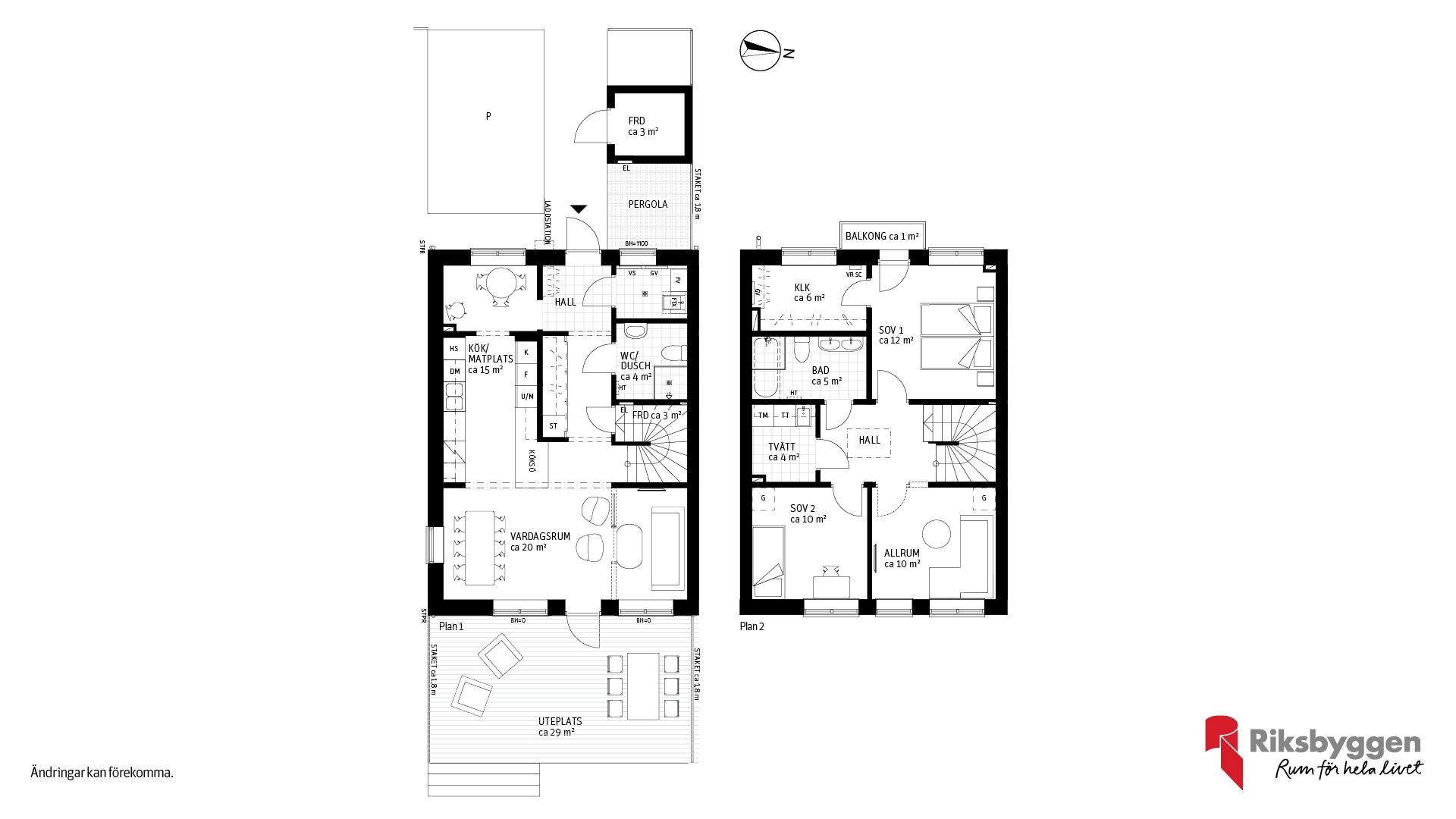 Flexibelt boende när livet förändras, kan byggas med 2-4 sovrum. Det är dubbla badrum med generösa ytor. I grovhallen i entrén tar du av dig skitiga stövlar eller tar hand om hunden. Köket är gjort för både fest och vardag. Plan ett är den sociala delen och plan två är mer privat, med sovrum och allrum. På plan 2 finns även tvättstugan så du slipper släpa tvätten mellan de olika planen, och ett generöst badrum med dubbelhandfat. Vi har skapat uteplatser åt två håll för sol hela dagen.