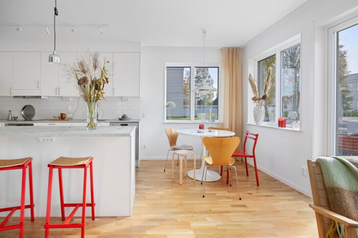 Välkommen till detta välplanerade stadsradhus på 98,5 kvm. Med flexibla planlösningar kan man anpassa dessa fina radhus för de flesta. Stor rymlig hall med förvaring samt öppen planlösning mellan kök och vardagsrum för socialt umgänge som sedan tar er vidare ut på en härlig uteplats i söderläge med grönskade trädgård runt om. På framsidan har du egen carport med kallförråd, välkommen till Brf Hjortrongränd!