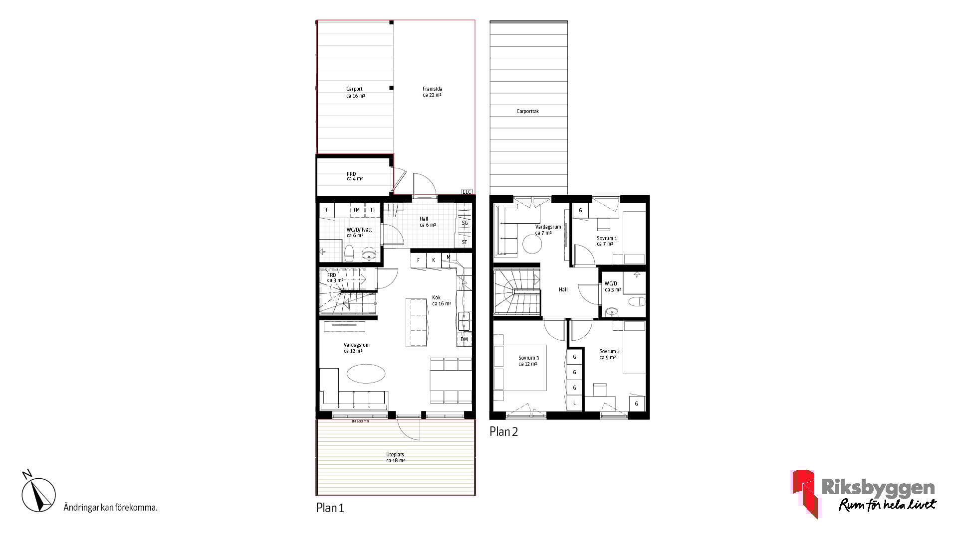 Framsidan av husen med carport