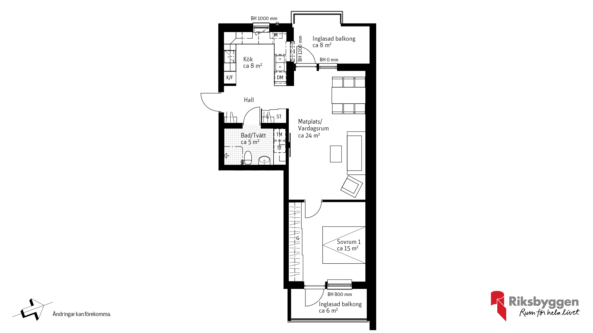 Öppen planlösning samt två inglasade balkonger! Stort sovrum med skjutgarderob. Välutrustat kök med diskmaskin, micro, kyl/frys. Badrum med kakel på väggarna och klinker samt el komfortvärme på golv. Tvättmaskin och torktumlare. Bostaden är inte uppförd ännu utan säljs på ritning. Prel. inflyttning kvartal 3 2026