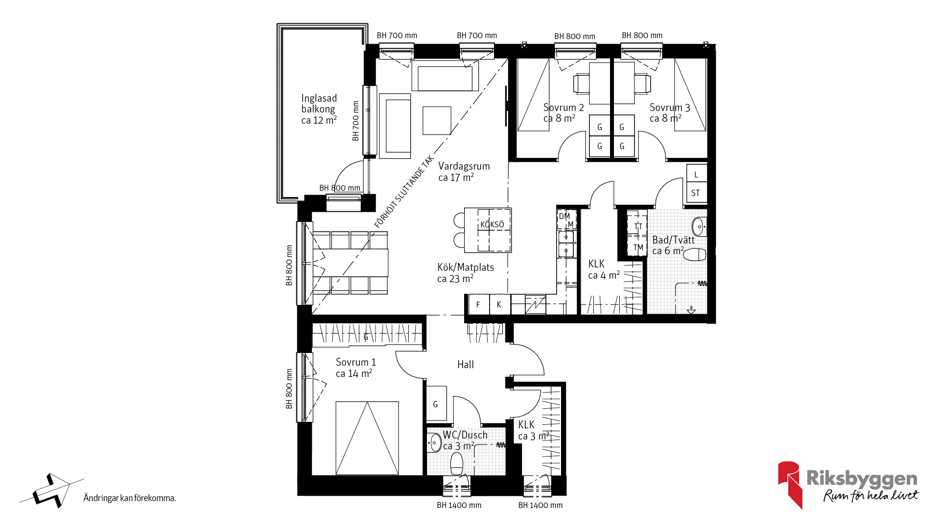 Unik 4:a med förhöjt sluttande tak i vardagsrum/matplats om ca 2,5-4,5m! Inglasad balkong ca 12 kvm i söderläge. Social, öppen planlösning. Kök med köksö, badrum med kakel på väggarna, klinker och elkomfortvärme på golvet samt tvättmaskin och torktumlare. Extra WC med dusch. Två klädkammare. Möjlighet att välja bastu som tillval. Bostaden är inte uppförd ännu utan säljs på ritning. Prel. inflyttning kvartal 3 2026