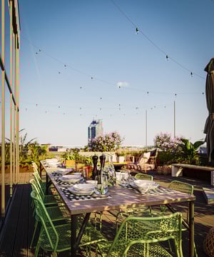 Alla bostäder har balkong eller uteplats, och högst upp i varje hus väntar en takterrass med milsvid utsikt över Västerås. Inflyttning planeras till Q2 2027.