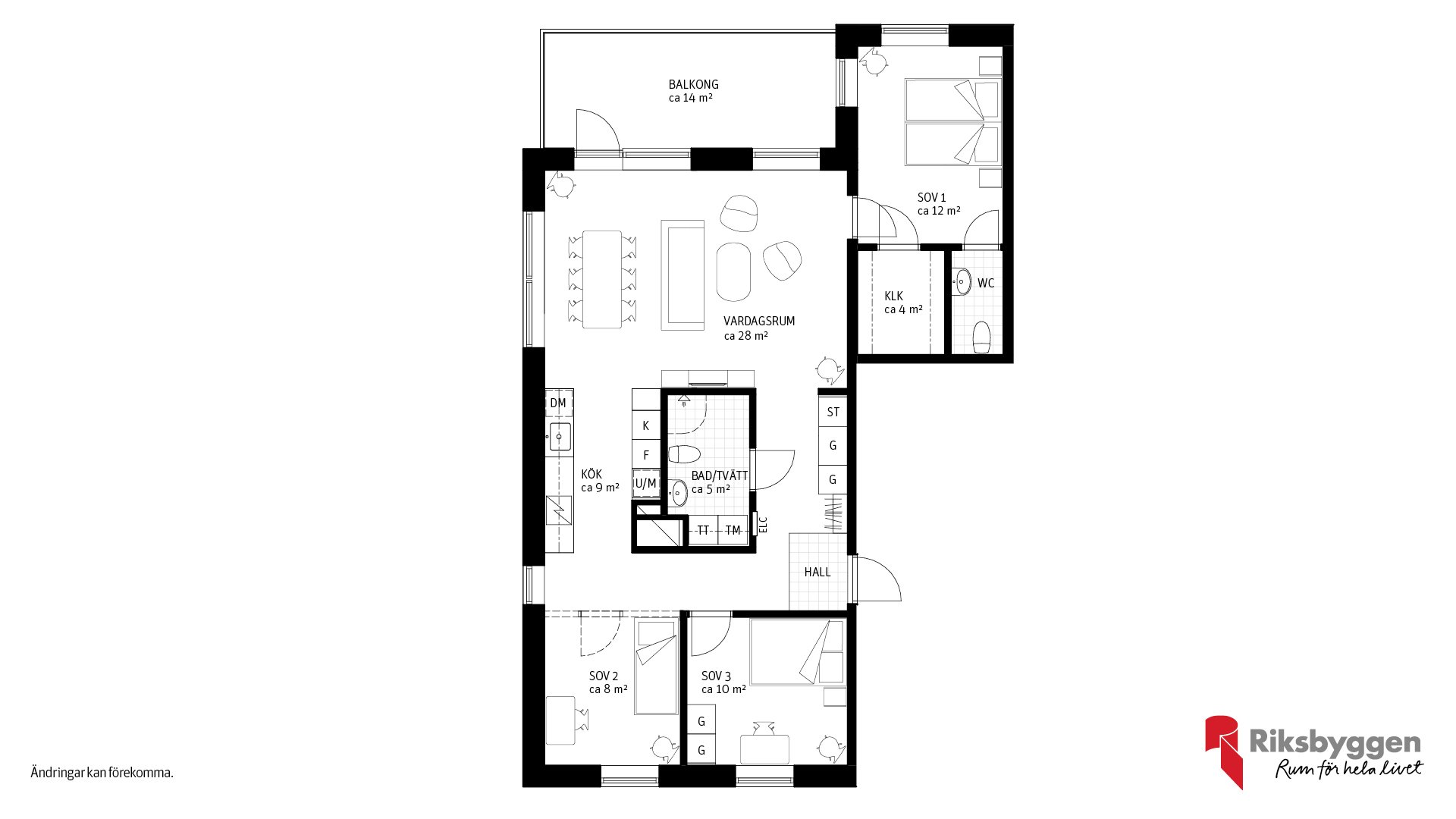 Här har vi tänkt till för att ge dig ett hem som passar just din livsstil. För dig som vill ha extra rymd och sociala ytor finns möjlighet att välja bort vissa innerväggar – till exempel mellan sovrum och vardagsrum – och i stället få ett större, öppnare vardagsrum. Det är ett perfekt alternativ för dig som prioriterar kvadratmetrar och ljus framför antal rum.