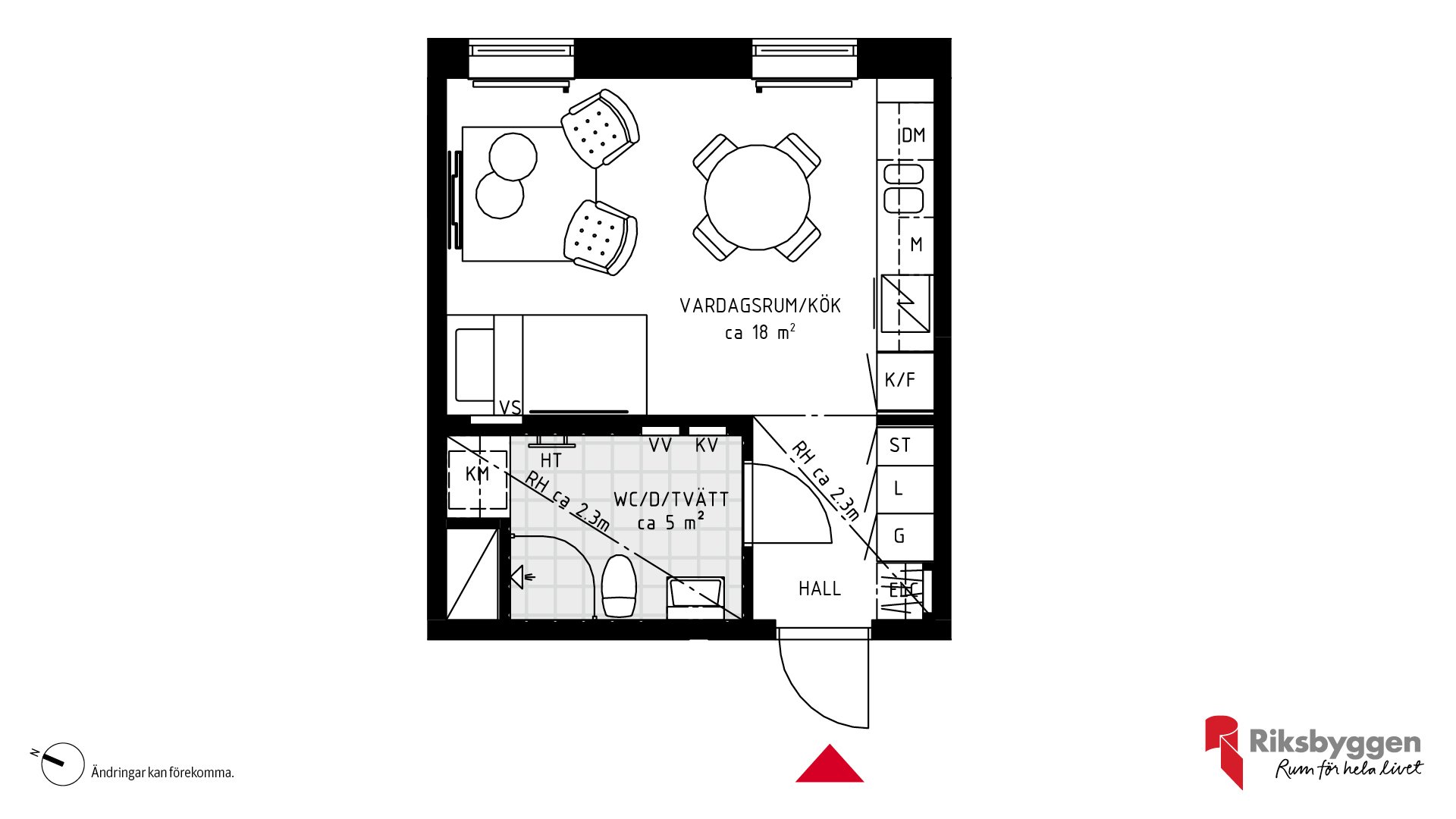 Här ser du faktiskt ut redan innan du stigit in över tröskeln, tack vare fin siktlinje rätt igenom lägenheten. Så mycket bättre kan inte ett första boende bli.