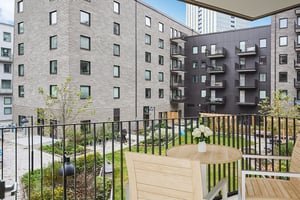 Detta är en lägenhet för många faser i livet – växande mage, utflugna barn, eller barnbarn som gärna sover över hos mormor och morfar. Fyra rum och kök med öppen planlösning mellan kök och vardagsrum, master bedroom med gott om garderober och balkong i sydväst med utsikt mot den gröna, lugna innergården.