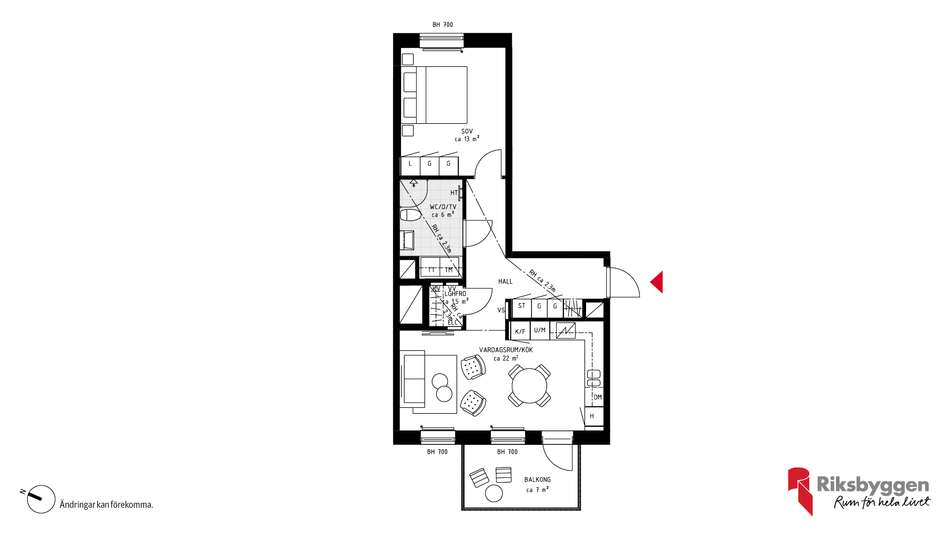 Två rum och kök, full av livskvalitet. Öppet luftrum, men ändå väl definierade ytor och funktioner.