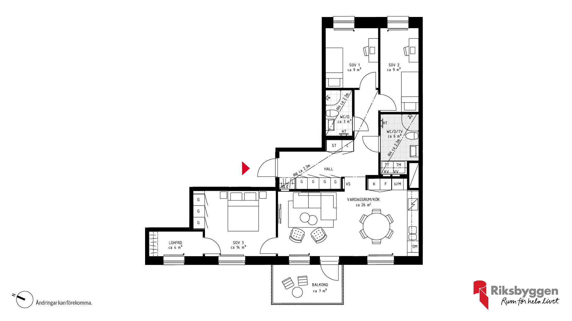 4:a full av livskvalitet. Socialt planerad lägenhet med kök, matplats och vardagsrum i öppen planlösning och utgång till balkong med utsikt mot den lugna innergården. Två helkaklade badrum Generöst master bedroom med anslutande ljus klädkammare.