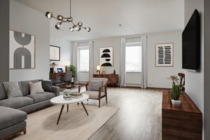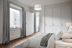 Hörnlägenhet med en planlösning som känns tuff men ändå elegant. Vardagsrummet ligger i samma del av lägenheten som köket med fönster i två väderstreck som gör att rummet blir ljust och härligt. Gott om förvaring med t.ex. klädkammare i det stora sovrummet. Balkong med utsikt över innergården.