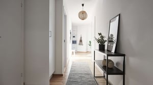 Rummen har målade väggar. Golven har 3-stavs mattlackad ekparkett och golvsockel i ek.