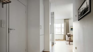 Rummen har målade väggar. Golven har 3-stavs mattlackad ekparkett och golvsockel i ek.