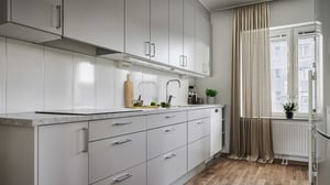 Inbyggnadsugn och mikro i högskåp, (ej 1 rum och kök) induktionshäll, kyl och frys alternativt kyl/frys, diskmaskin.