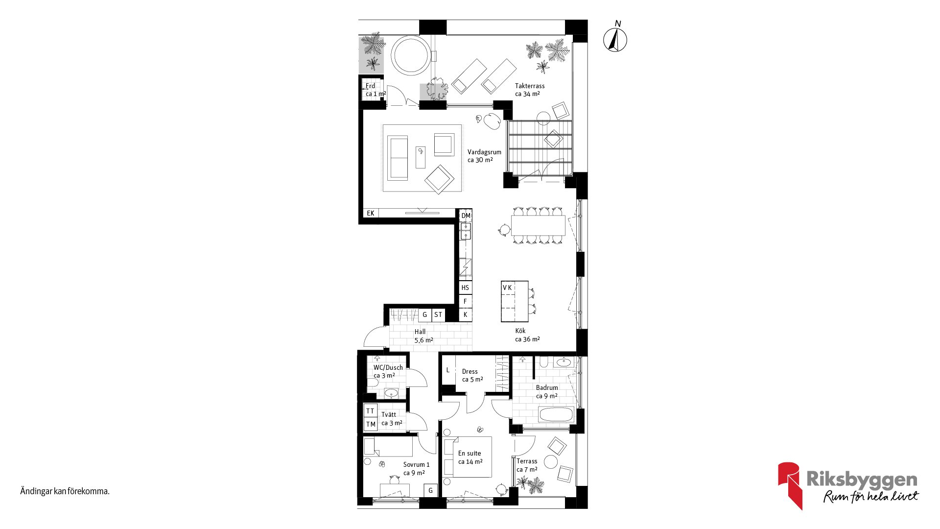 • Gemensamhetslokal med takterrass och övernattningslägenhet.