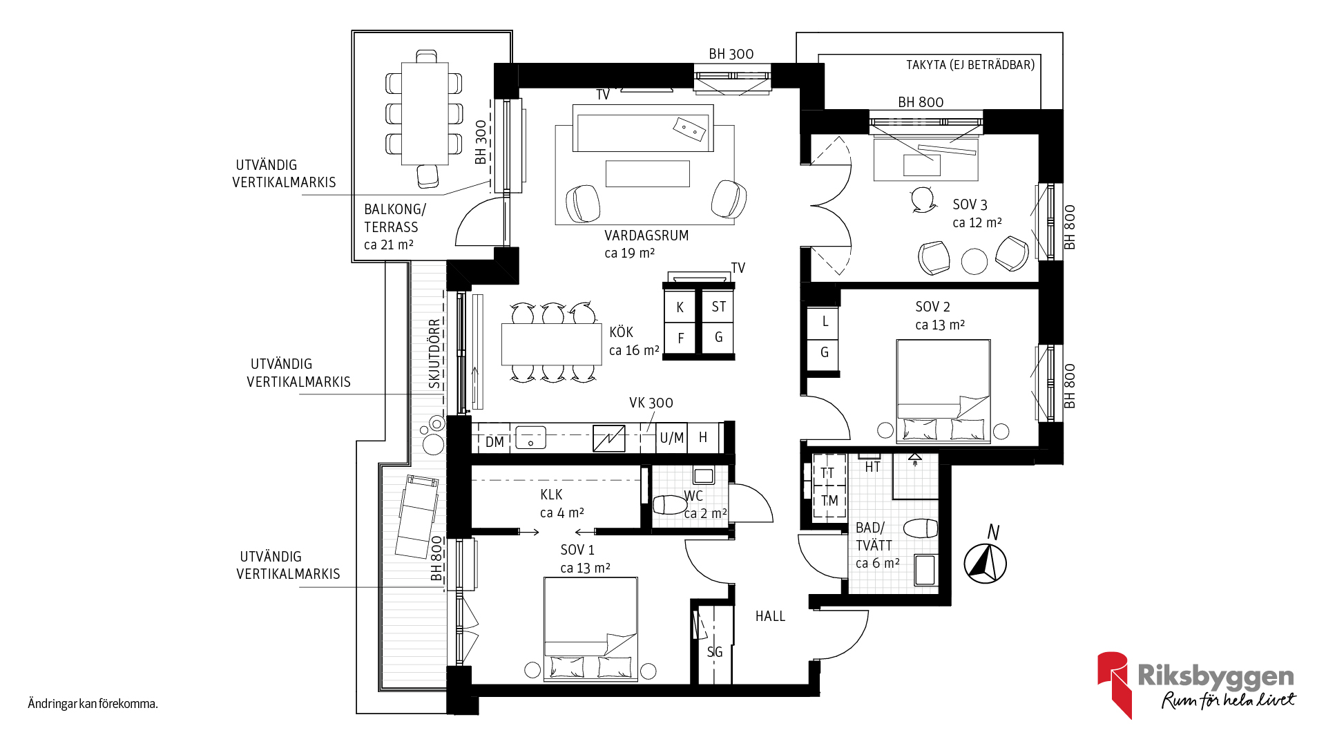 Roof Top. Rymlig 4:a med halvöppen planlösning mellan kök och vardagsrum. Stor takterrass. Sovrum med klädkammare. Badrummet har tvättmaskin och torktumlare från Bosch. Kök från Vedum. Extra WC. Första Långgatan blir en vacker boulevard av kontinentalt snitt och Masthamnsgatan - eller Nya Lång som den också kallas - blir ett vänligt, grönt och soligt promenadstråk med uteserveringar i bästa läge.