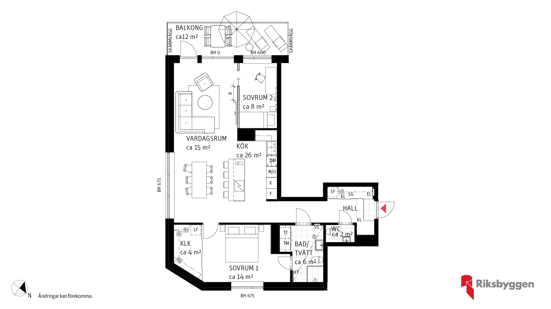 Rymlig 3;a om 88 kvm. Hall med skjutdörrsgarderob. Social yta med kök och vardagsrum i öppen planlösning, köksö för extra förvaring och avlastningsyta. Sovrum 1 med rymlig klädkammare och ingång till badrum. Sovrum 2 mot parken. Balkong mot park om ca 12 kvm. Finns möjlighet att få ett större vardagsrum vid val av frånvalsvägg. Gästtoalett.